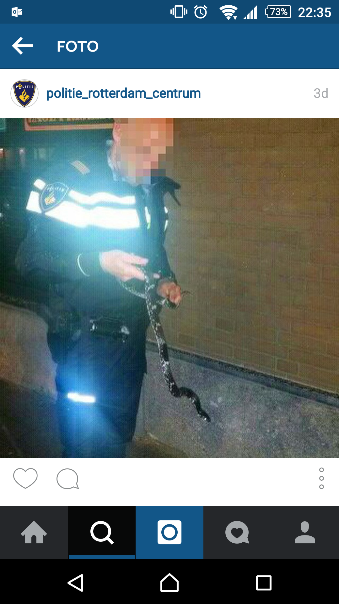 De politie van Rotterdam centrum meldde via het instagram account dat er in de nacht van maandag op dinsdag een slang zou hebben gekropen door de Coolsestraat in Rotterdam. Een voorbijganger heeft de slang gemeld bij de politie, die de slang vervolgens ter plaatse aantrof. Hierna heeft de dierenambulance zich over het dier ontfermt. Het doorgeplaatste bericht op Twitter ontving de vraag om wat voor een soort slang het betrof. Het zou gaan om een Russische rattenslang.