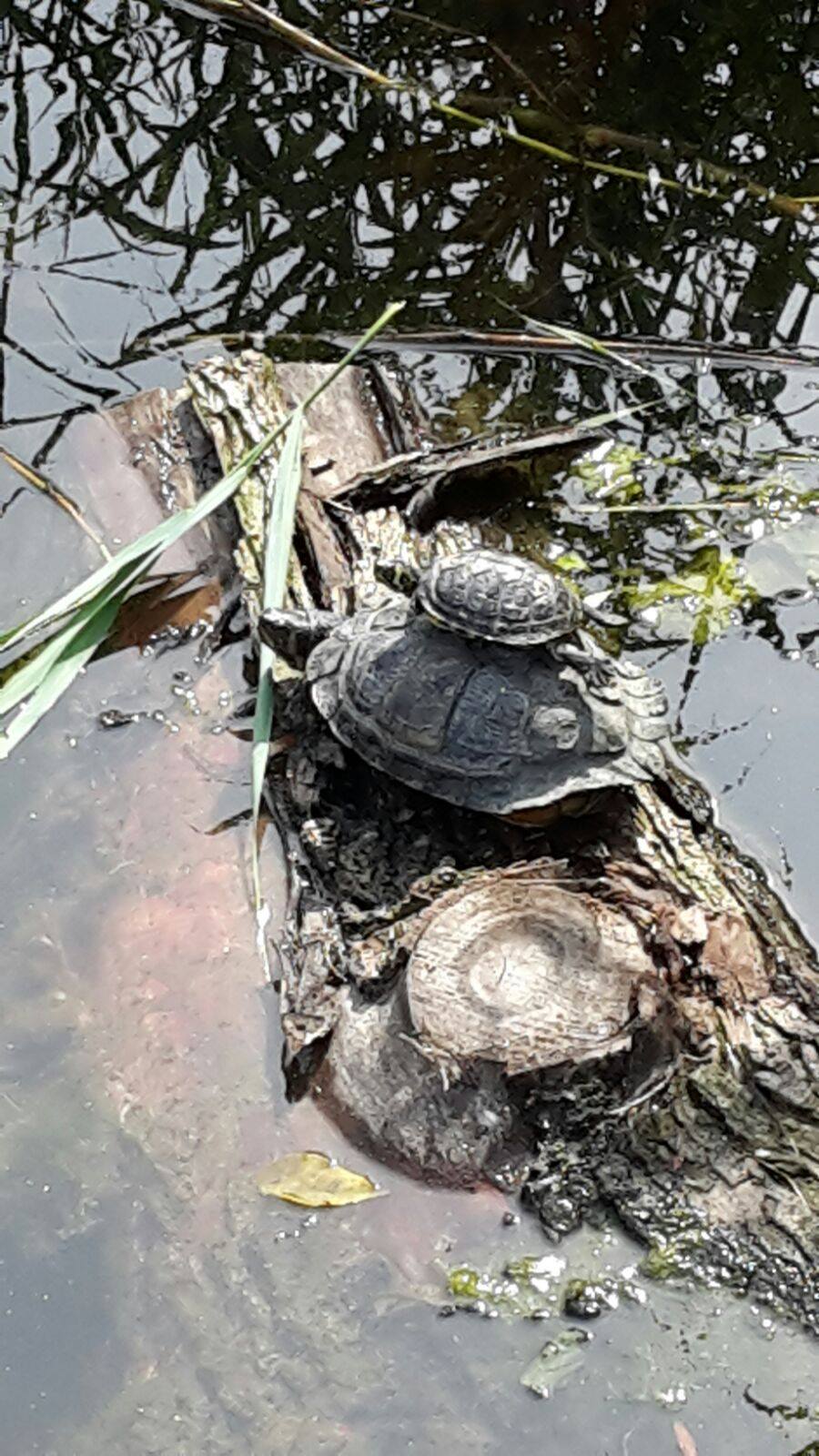 Ja, ook in de vijvers en sloten van Delfland kun je schildpadden tegenkomen. En nee, die horen daar niet! Schildpadden zijn (semi)tropische dieren. Ze komen in onze sloten terecht doordat mensen ze uitzetten. Bijvoorbeeld omdat zij hun aquarium zat zijn en de inhoud hiervan in de sloot zetten. Maar dat is geen goed idee. Het water is te koud voor schildpadden waardoor ze langzaam verzwakken en doodgaan.